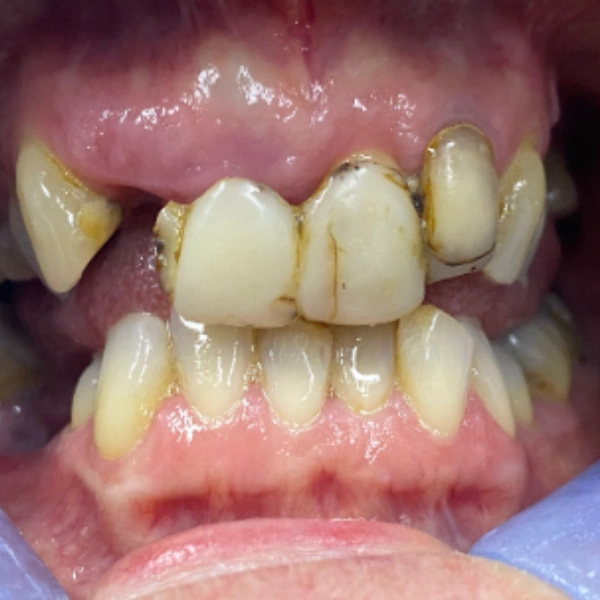 Problem: Unable to smile confidently, restricted diet due to removable dentures